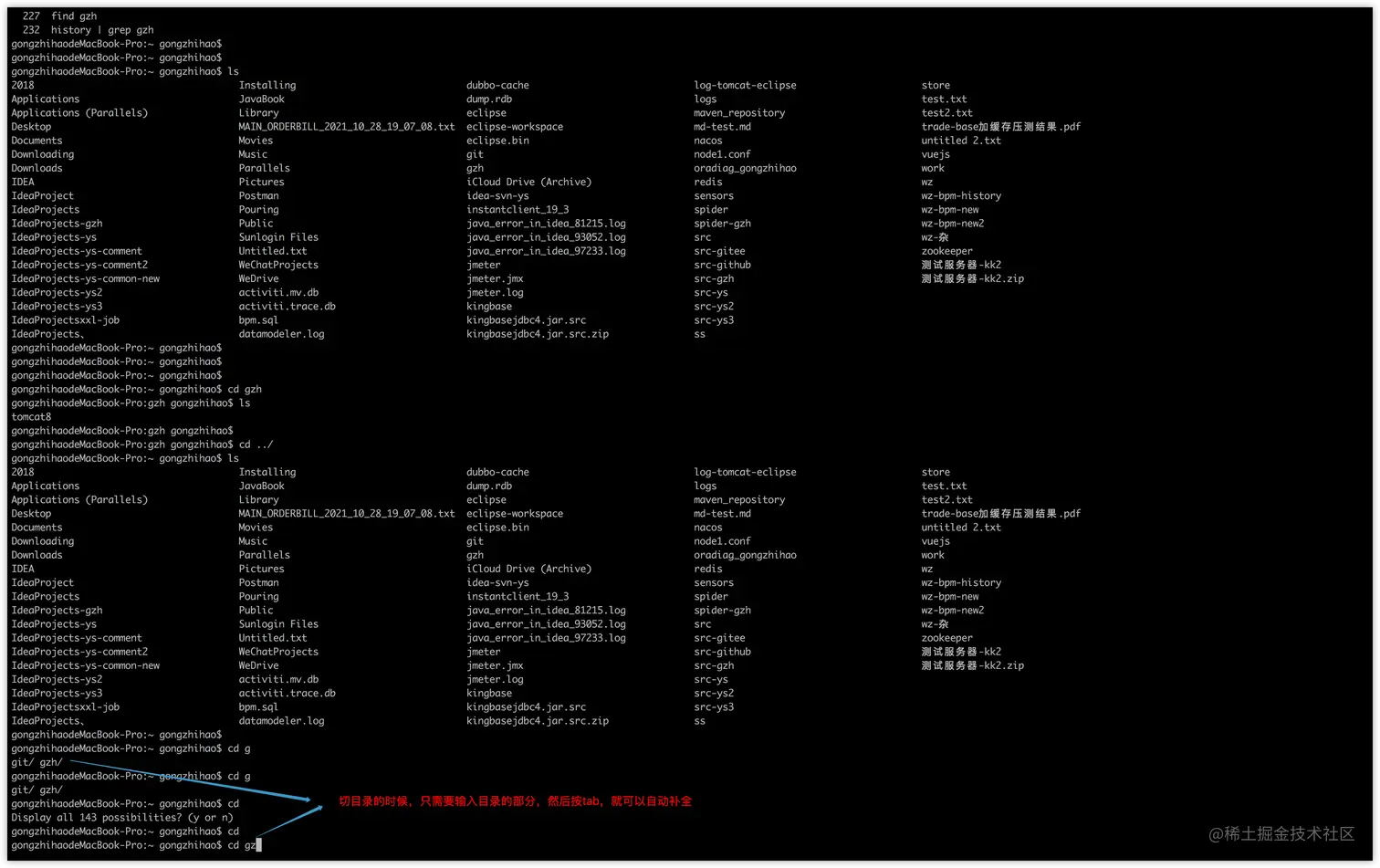 刚才上面的是自动补全命令,现在是自动补全目录名字或者文件名字。本质作用一样,都是会自动补全。