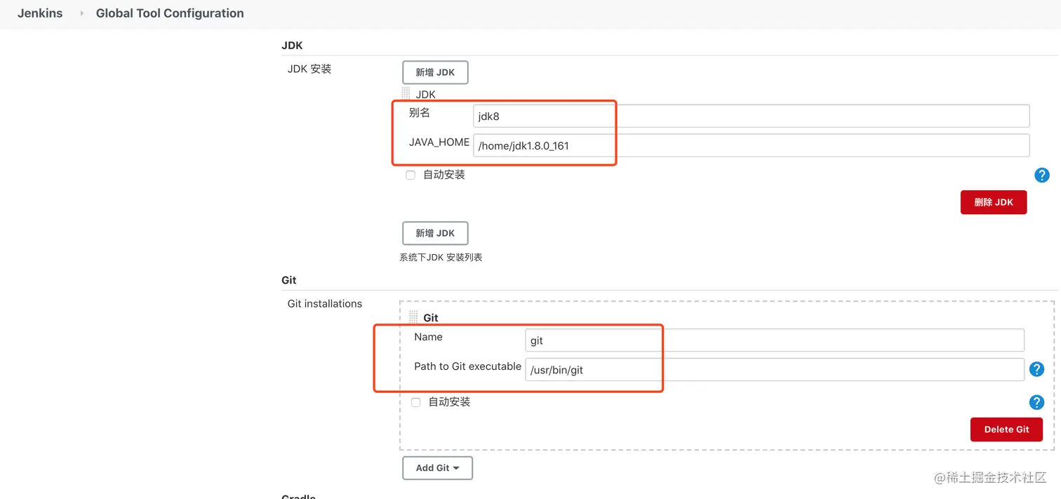 4. jenkins全局工具配置中, 配置jdk/git/maven
