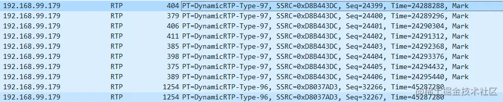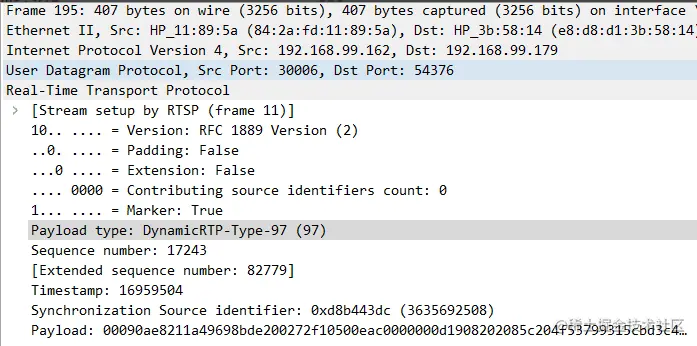 传输音频,使用的是30006端口,对应的类型为97,代表为音频类型。