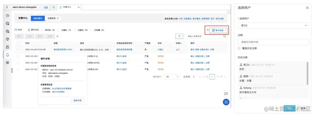安全事件发生后,如果不及时处理或不慎遗漏都会造成更大的安全风险扩展。因此,一定要建立完备的反馈机制,将安全问题处理形成闭环。基于这个问题,我们提供了安全事件管理中心,便于用户全局查看安全事件,并进行相应的管理动作。当开发或安全人员接收到安全告警事件通知后,可以登陆安全事件管理中心进行事件的确认、处理人的指派、处理动作记录等操作。