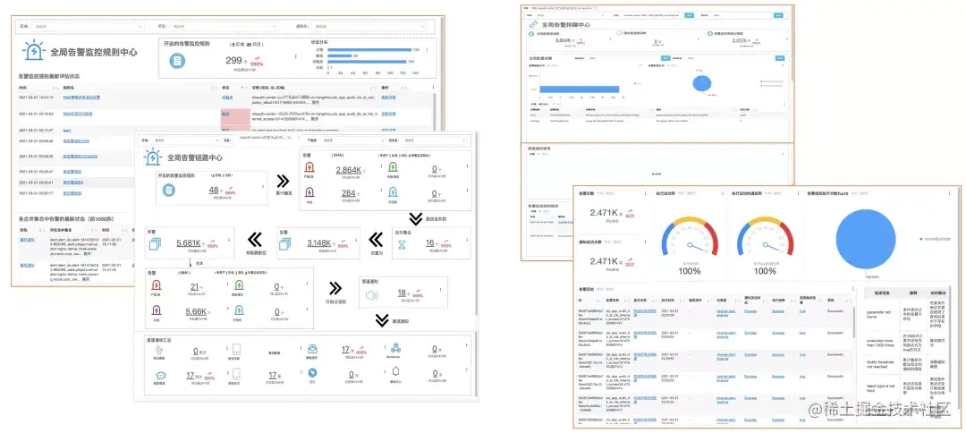 通过上文提到的统一的数据接入、统一的查询分析能力,我们可以做到对安全威胁的基本的探测能力。但是要构建完备的监控体系,接下来就要解决如何持续监控的问题。基于这个问题,我们开发了一套一站式智能运维告警系统。它提供对日志、时序等各类数据的告警监控,亦可接受三方告警,对告警进行降噪、事件管理、通知管理等。