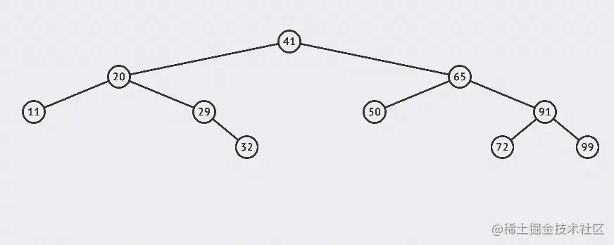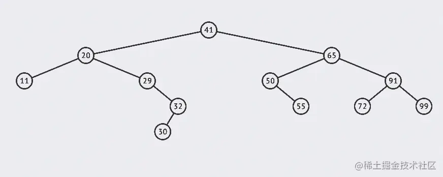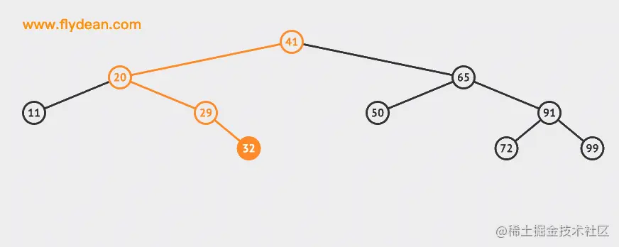 - 从根节点41出发,比较根节点和搜索值的大小