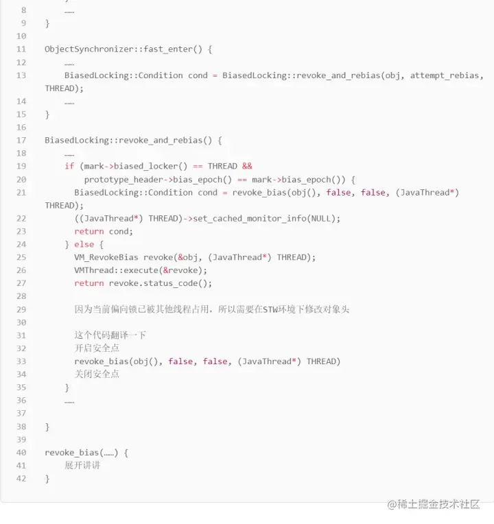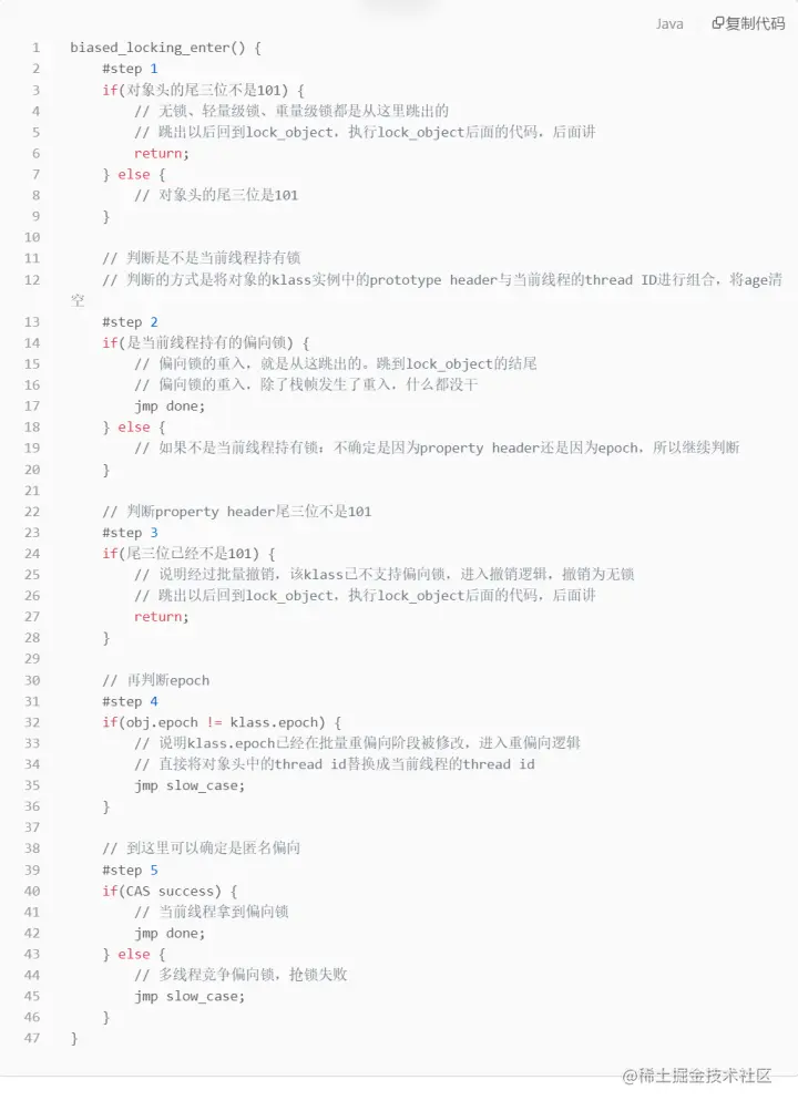 biased_locking_enter 这个方法全是汇编,我就不贴源码了,以伪代码的方式直接讲它的执行逻辑