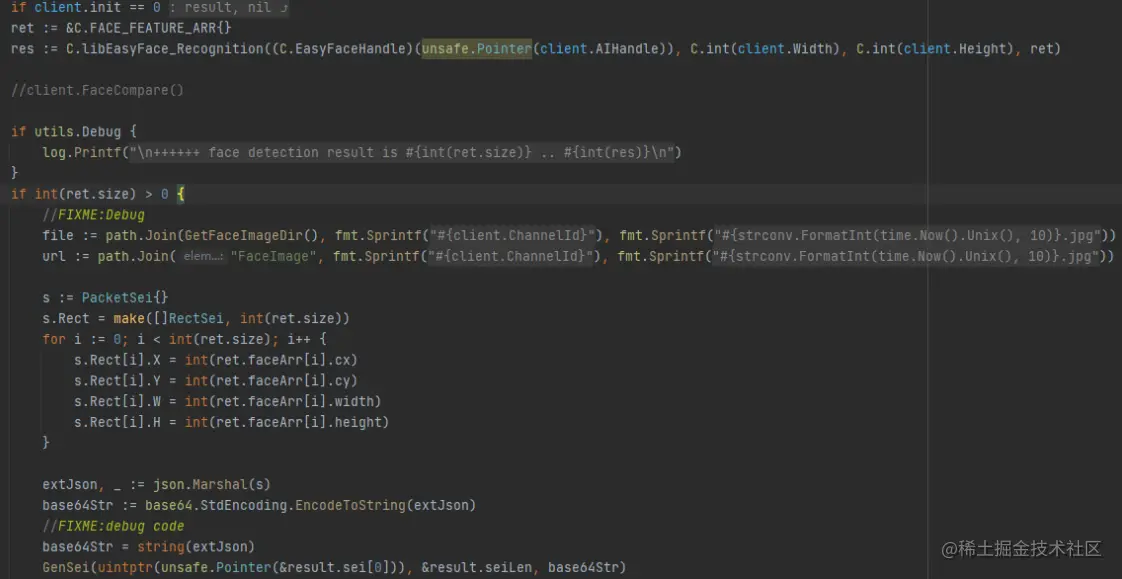 下图是特征提取,把特征提取到的X轴、Y轴、宽度和高度都保存在Rect的变量中。把Rect里面的值转换为SEI帧,传给前端用于绘制人脸的红色的框。