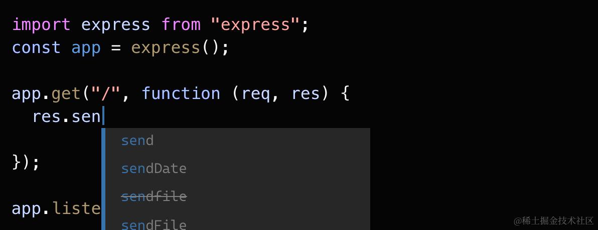 这意味着 TypeScript 对你编写代码也很有帮助,核心的类型检查器不仅可以提供错误信息,还可以提供代码补全功能。这就是 TypeScript 在工具方面的作用。