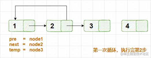 // 4.将temp作为next