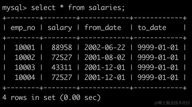 salary 降序进行 1-N 的排名,要求相同 salary 并列且按照 emp_no 升序排列: