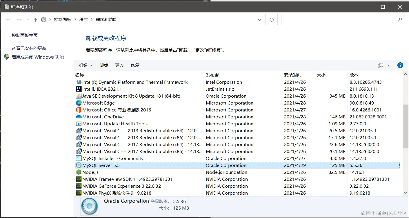 在程序和功能中将关于MySQL的软件全部卸载掉