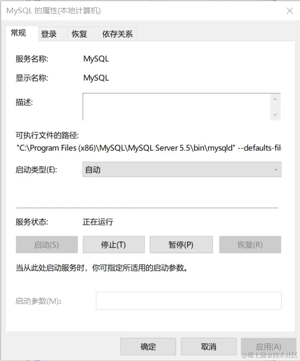 点击MySQL --> 将服务状态改为停止 --> 点击应用 --> 点击确定 --> 关闭