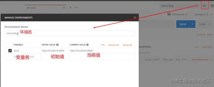 创建环境,点击右上角眼睛图案创建环境。