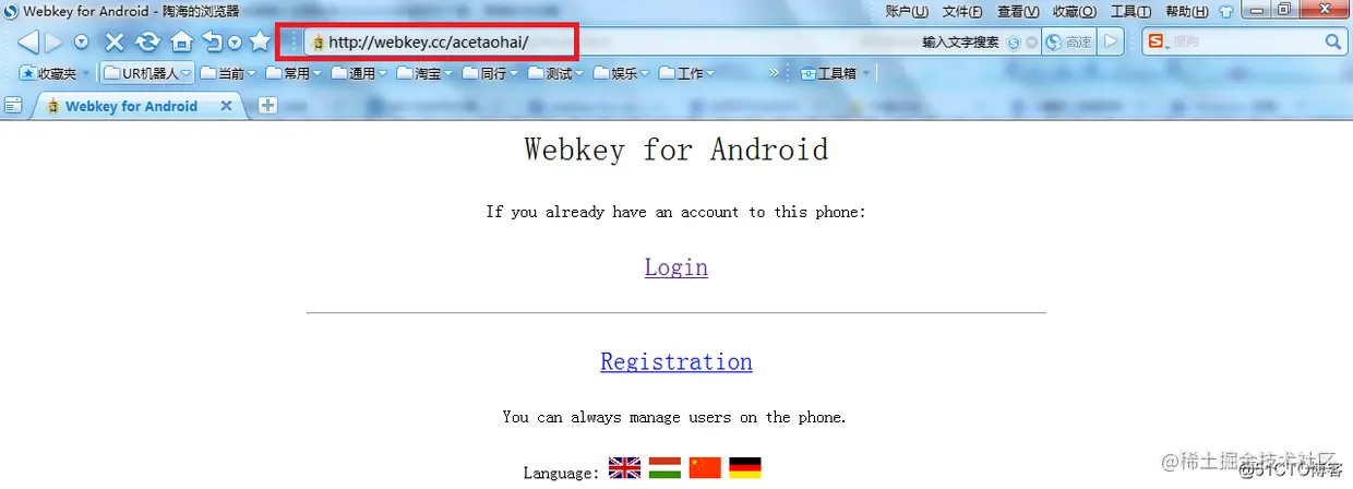 在浏览器中输入这个网址,点击Login(用刚才在手机上新建的用户登录)
