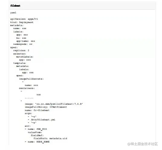 安装日志采集agent的yaml配置,采集包含容器namespace、pod ip、nodename等,区分不同容器集群和不同环境。