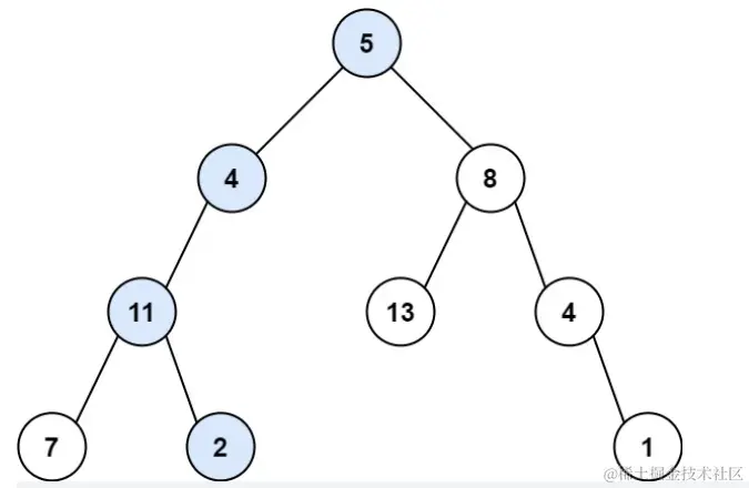 这个问题在于这条路径上所有节点值相加等于目标和 targetSum,路径和可以定义为从跟节点到叶子节点的所有节点的和。
