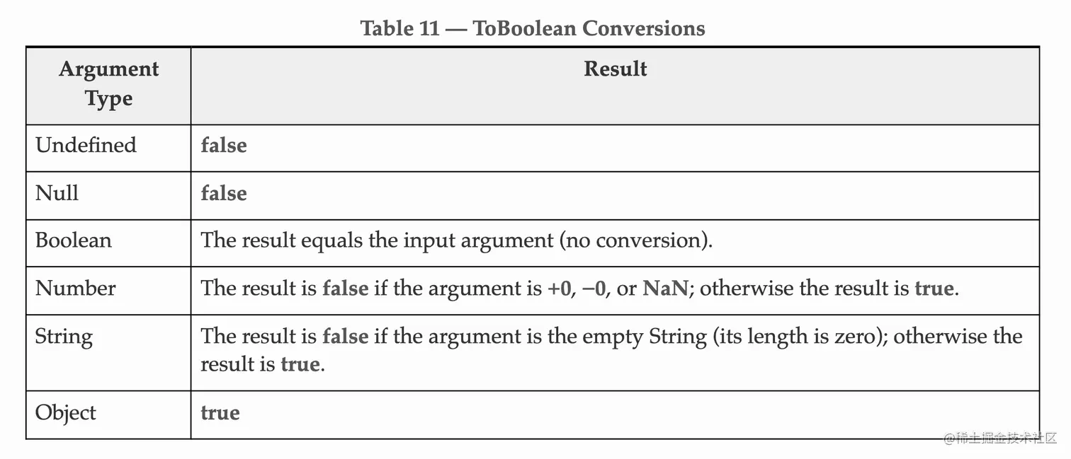 根据ES规范规定,所有非原始类型的对象转化为Boolean都为true: