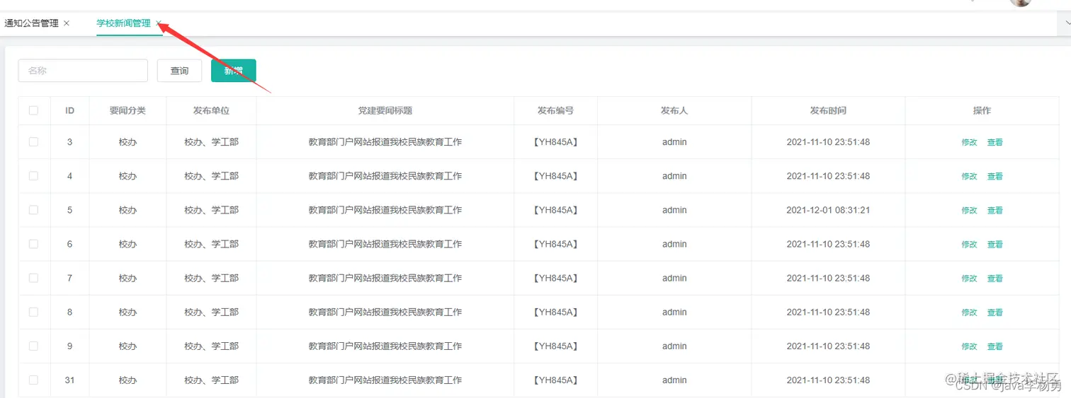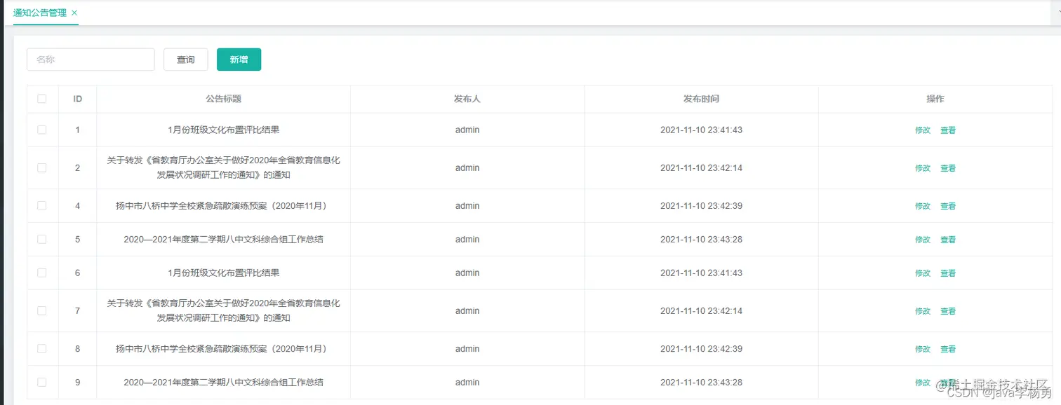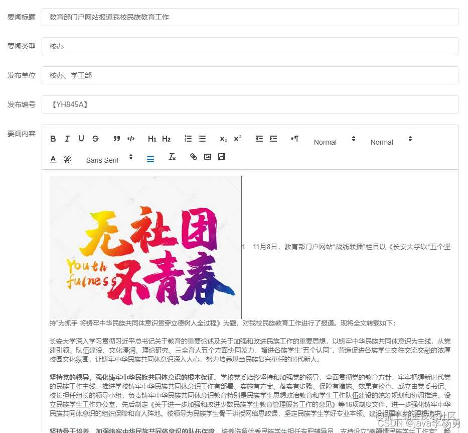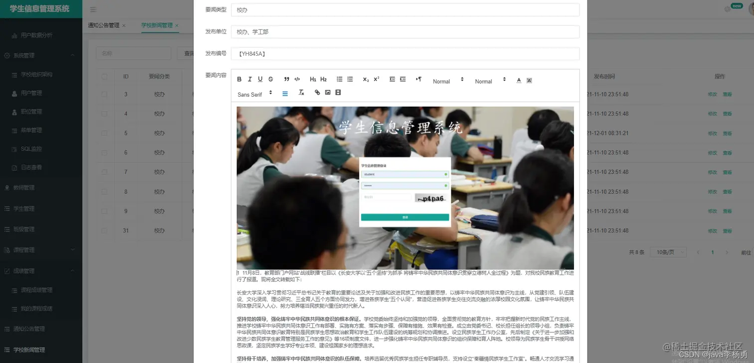 学校通知公告信息:添加、修改、删除、查询等、利用富文本进行数据上传和显示