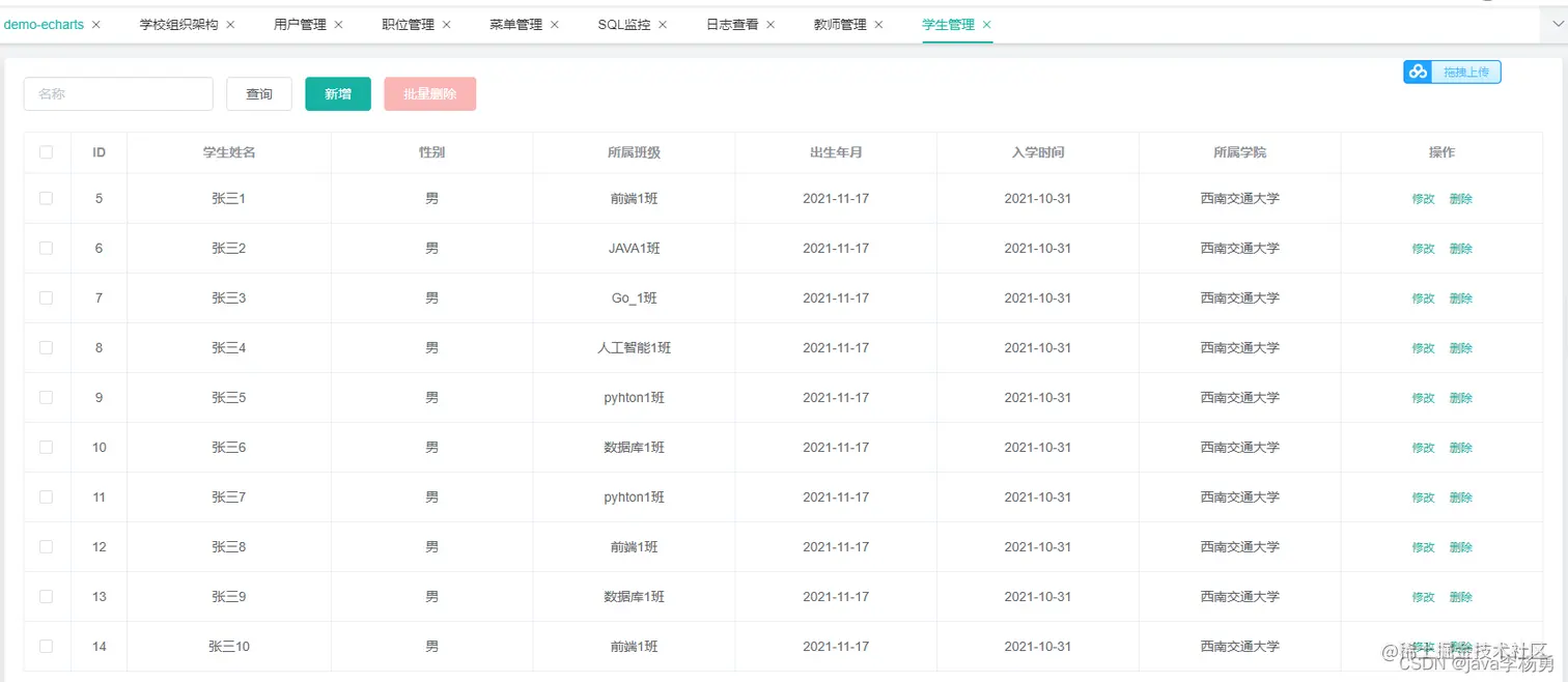 学生教师管理:录入数据、添加、修改、删除、查询等