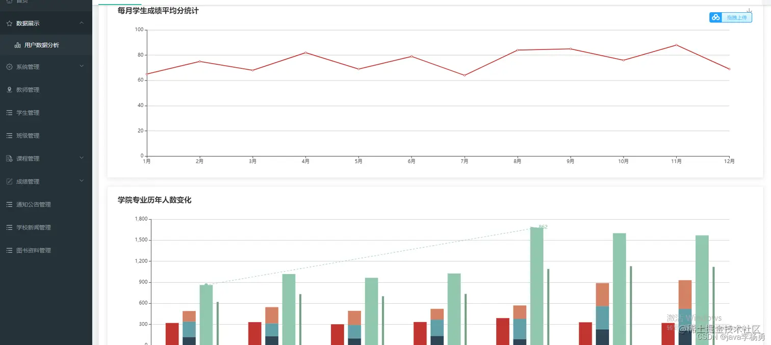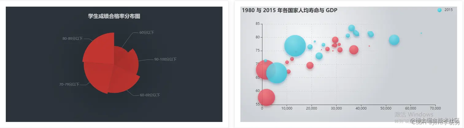 数据展示:echarts模拟树状图和折线图以及分布图等、可以从后台动态获取数据。