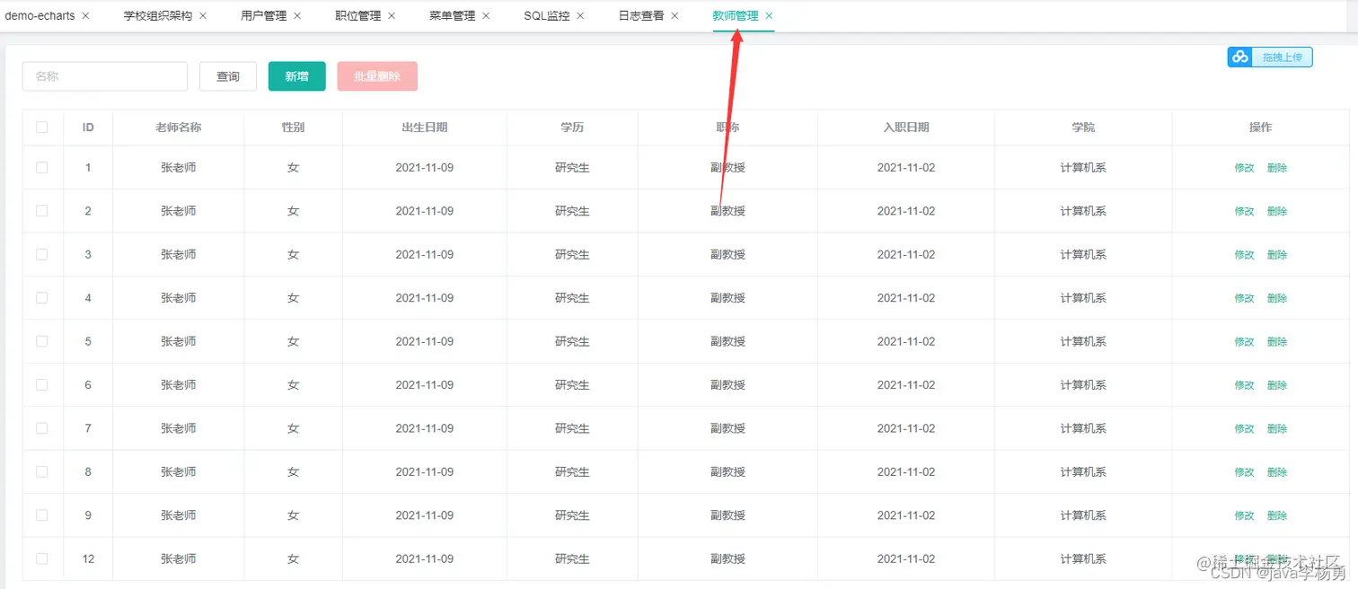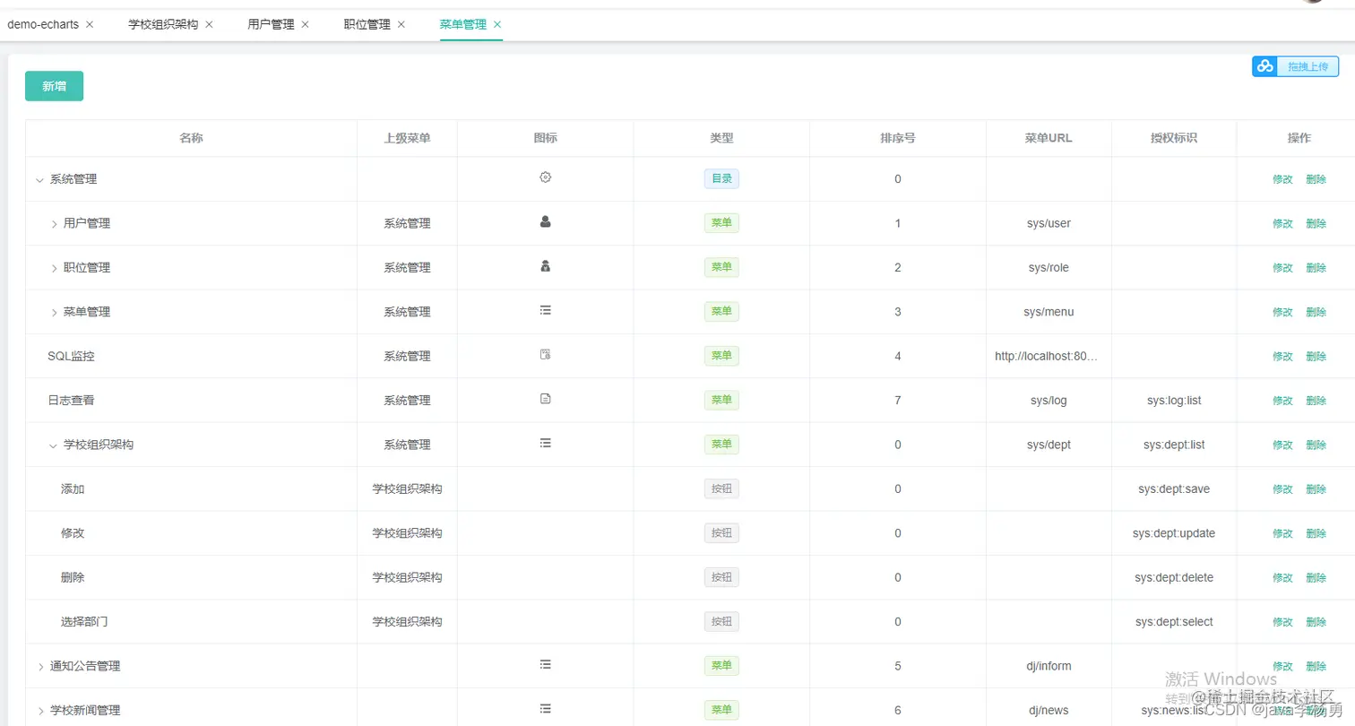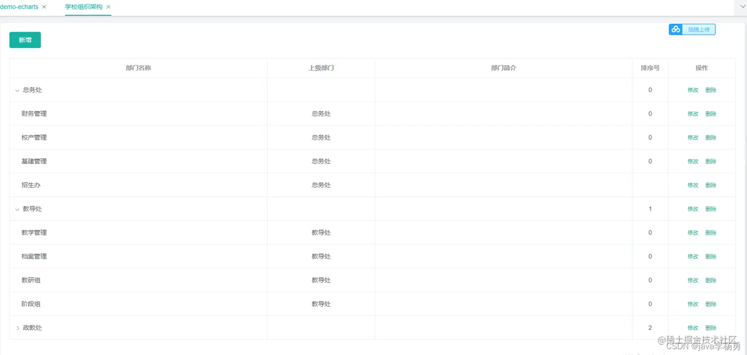 学习组织架构:列表可折叠、添加、修改、删除、查询功能齐全。