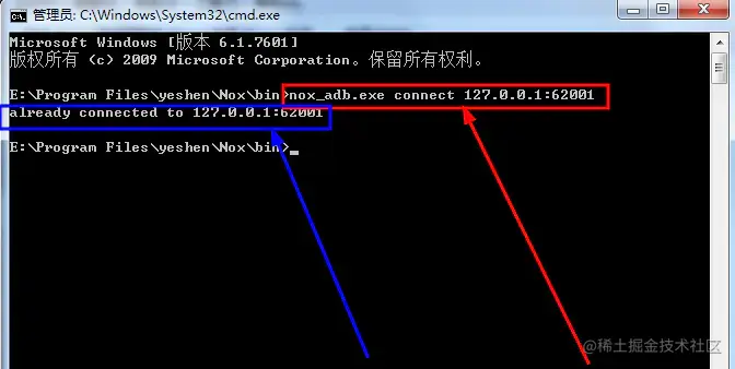 nox_adb.exe connect 127.0.0.1:62001