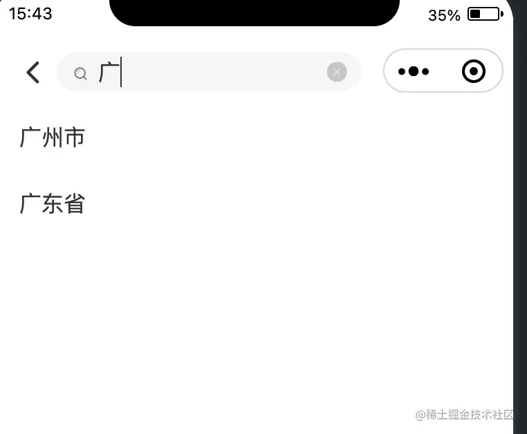 背景:最近项目中原来多城市选择下拉组件老板嫌找城市麻烦,并且很多区域没有项目。所以新增一个搜索的页面。页面返回多省市区为自己后段返回多有项目的省市。所以自己做了一个切换tab并且可小程序内城市搜索的页面