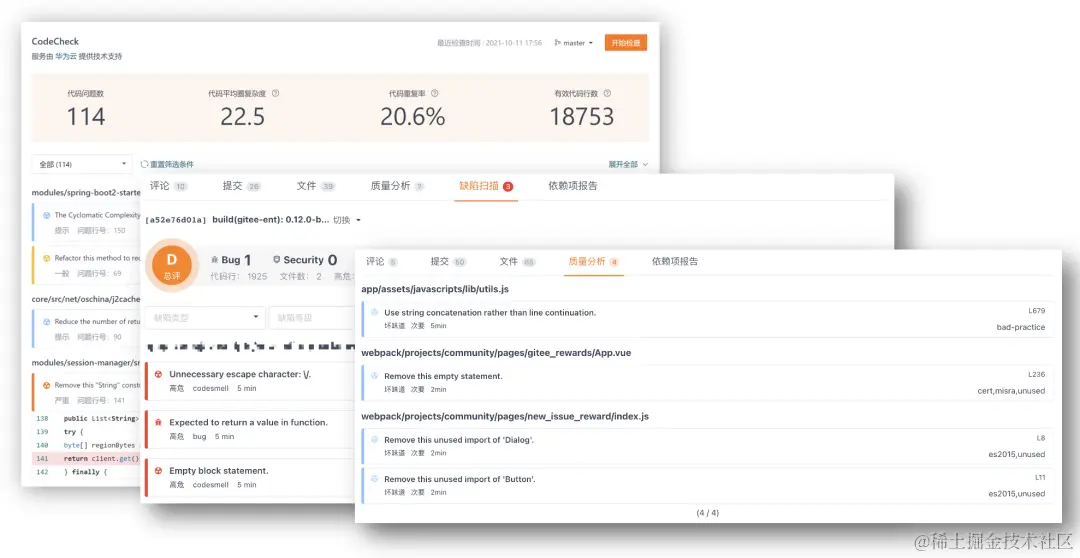 华为和奇安信提供的代码质量和漏洞检测服务、棱镜七彩提供的许可证合规性检测服务均已上线运行,并已为数万个开源项目提供优质的服务,获得了广大国内开源作者的好评。