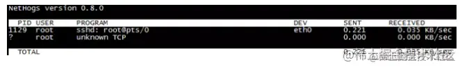 Nethogs 是一个终端下的网络流量监控工具可以直观的显示每个进程占用的带宽。