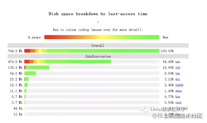 [root@localhost ~]# agedu -w --address 192.168.0.108080 --auth none #--auth关闭认证如果不加端口号会生成一个随机的用浏览器访问