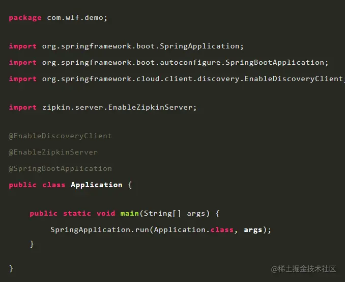 启动类加入服务发现的注解和zipkin的注解,如下
