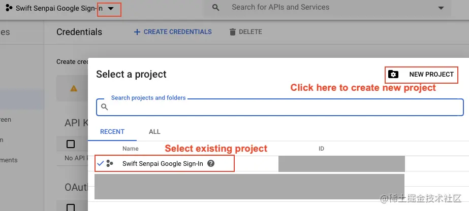 到Google APIs Console为你的app创建一个项目。如果你已经创建了,你可以从项目列表中找到它。