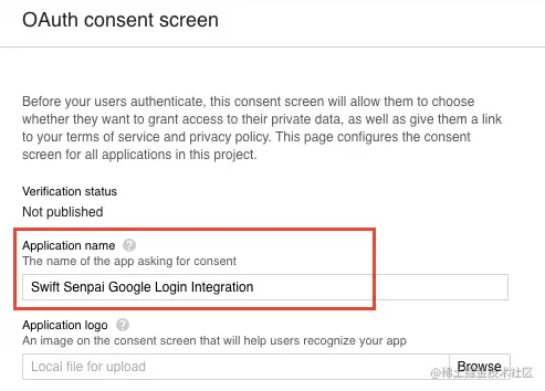 在 OAuth consent screen页面,填好Application name然后保存。Application name将在用户登录时的Google Sign-in框中显示。