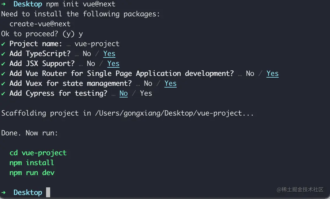 npm init vue@next