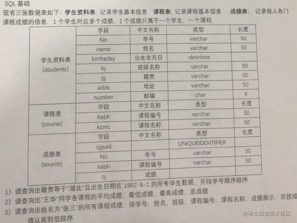4、现有三张数据表如下:学生资料表:记录学生基本信息;课程表:记录课程基本信息;成绩表:记录每人各门课程成绩的信息,1 个学生对应多个成绩,1 个成绩只属于一个学生,一个课程