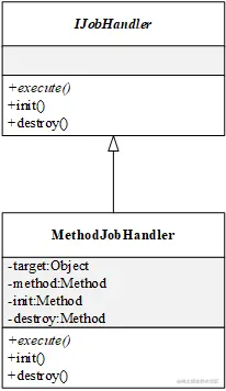 它的子类必须要实现 execute() 方法,它一共有三个子类,UML 图如下所示,我们使用的主要是 MethodJobHandler: