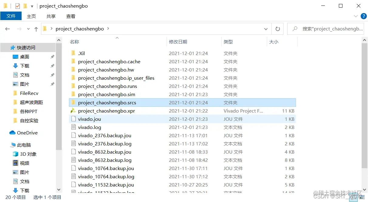 project_chaoshengbo.srcs中放的是.v文件和约束文件