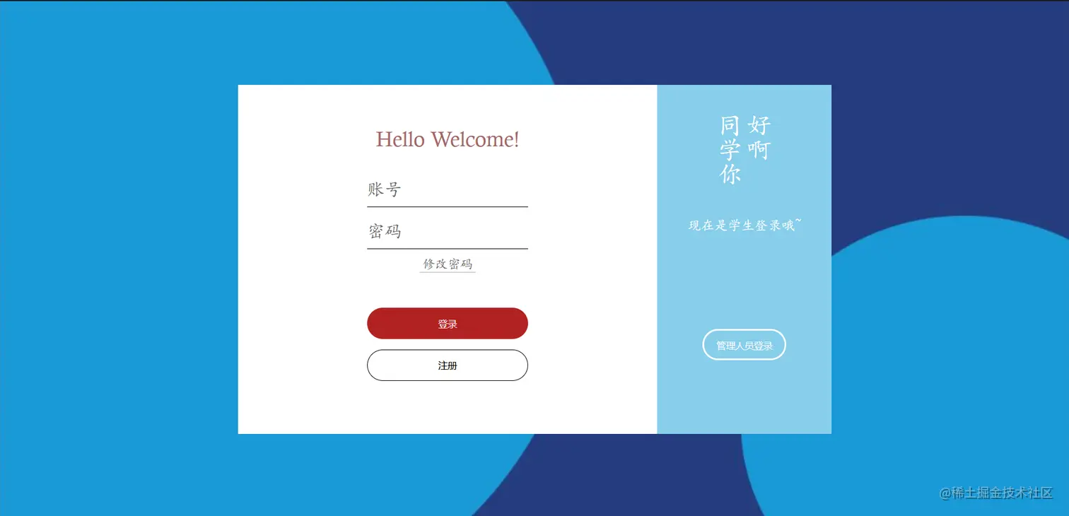 - 经历:这是我大学中第一次参加省级以上的比赛,当然结果也是啥也没得到,因为我们只用了一个星期去开发它,当时也知会原生写,图表也是现学的,当然这次的失败也直接把我的经验拉满,在之后的比赛也是很有效率的。