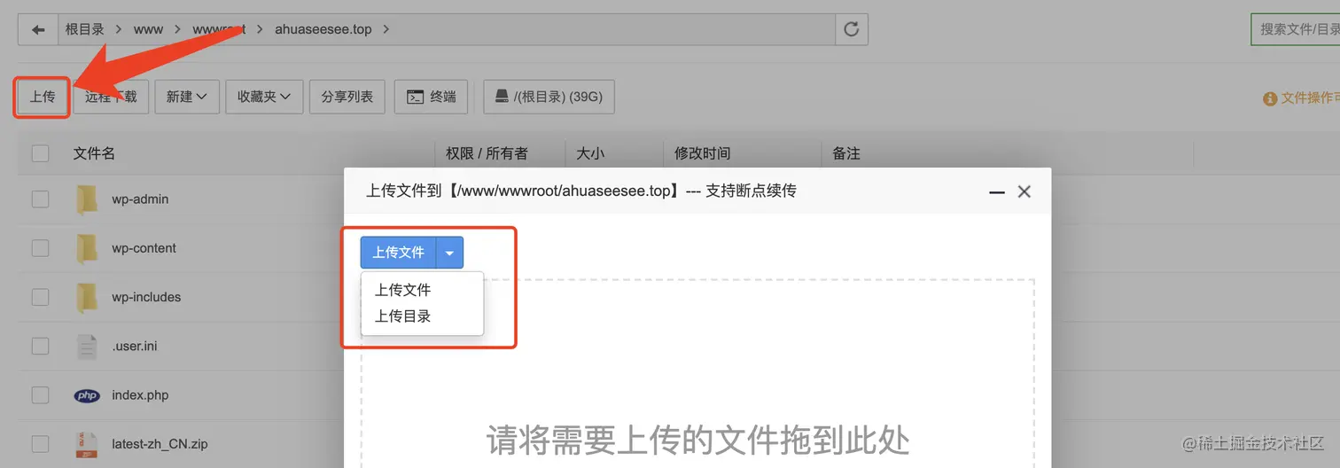 下载好后再通过宝塔上传到服务器网站目录下即可。