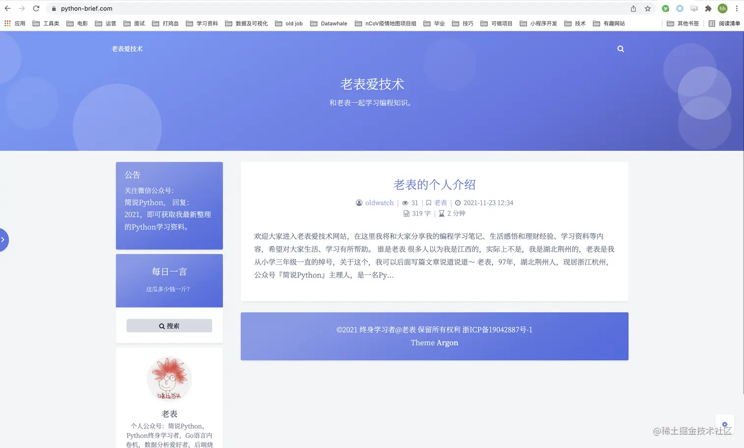 终于有了一个个人网站啦,后面学习资源、文章也可以在文章上备份一份~开心,欢迎大家浏览器访问:python-brief.com