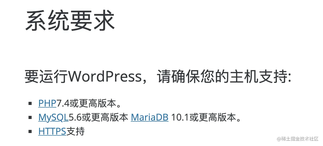 我们可以先去WordPress官网查看安装需要的系统环境,php我们之前没有安装过,mysql已经安装过啦~域名证书前面也已经配置啦~接下来我们先安装下php。