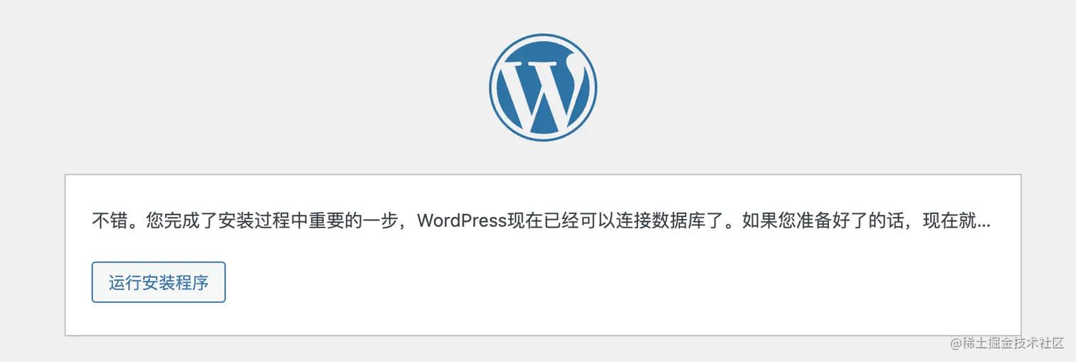 正常数据库相关设置不填写错误,应该就会到下面界面,直接点击运行安装程序即可。
