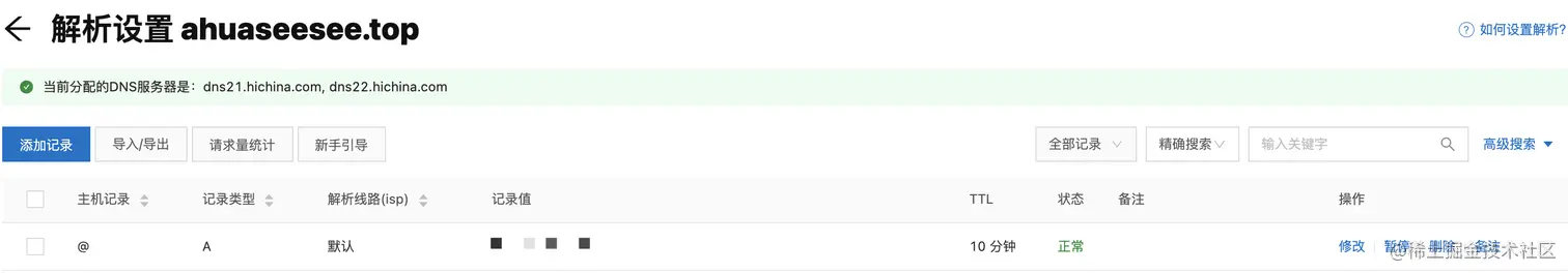 注意,绑定证书后,要想域名能正常访问80端口,我们还需要给域名设置一条A类型解析记录,也就是直接指向我们的服务器公网ip地址。(如果还不知道服务器公网ip是什么,怎么添加域名解析的,建议先看下跟老表学云服务器开发的第一篇文章)