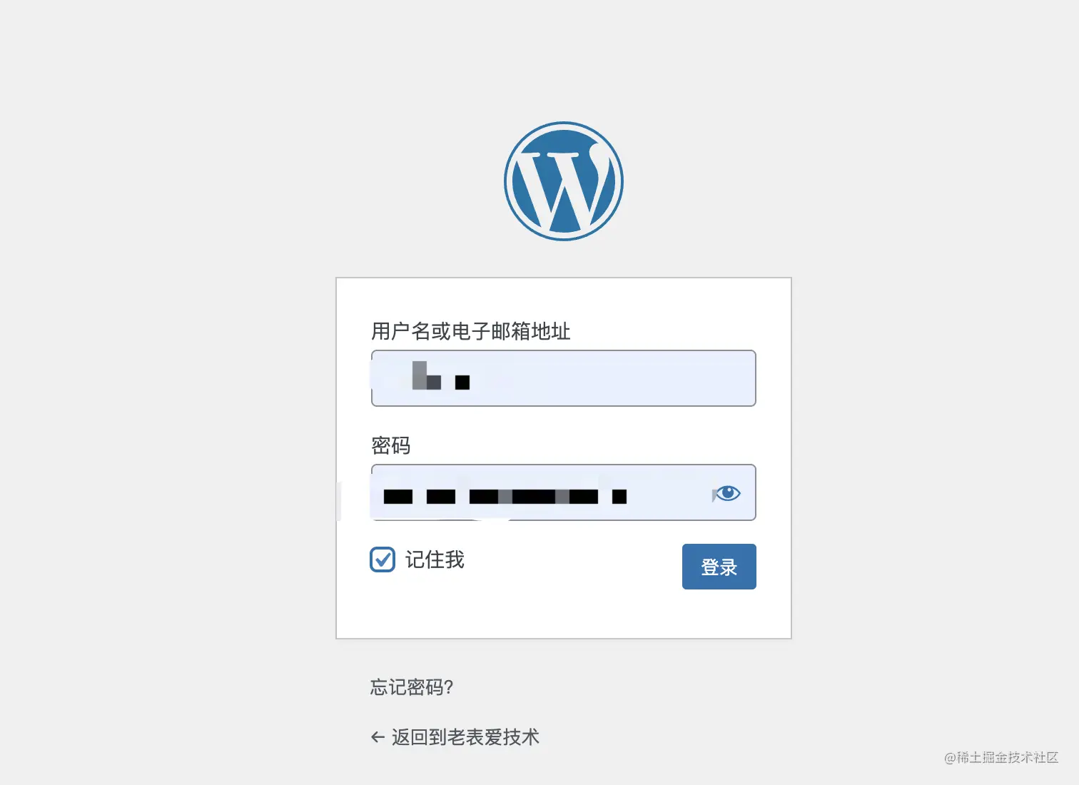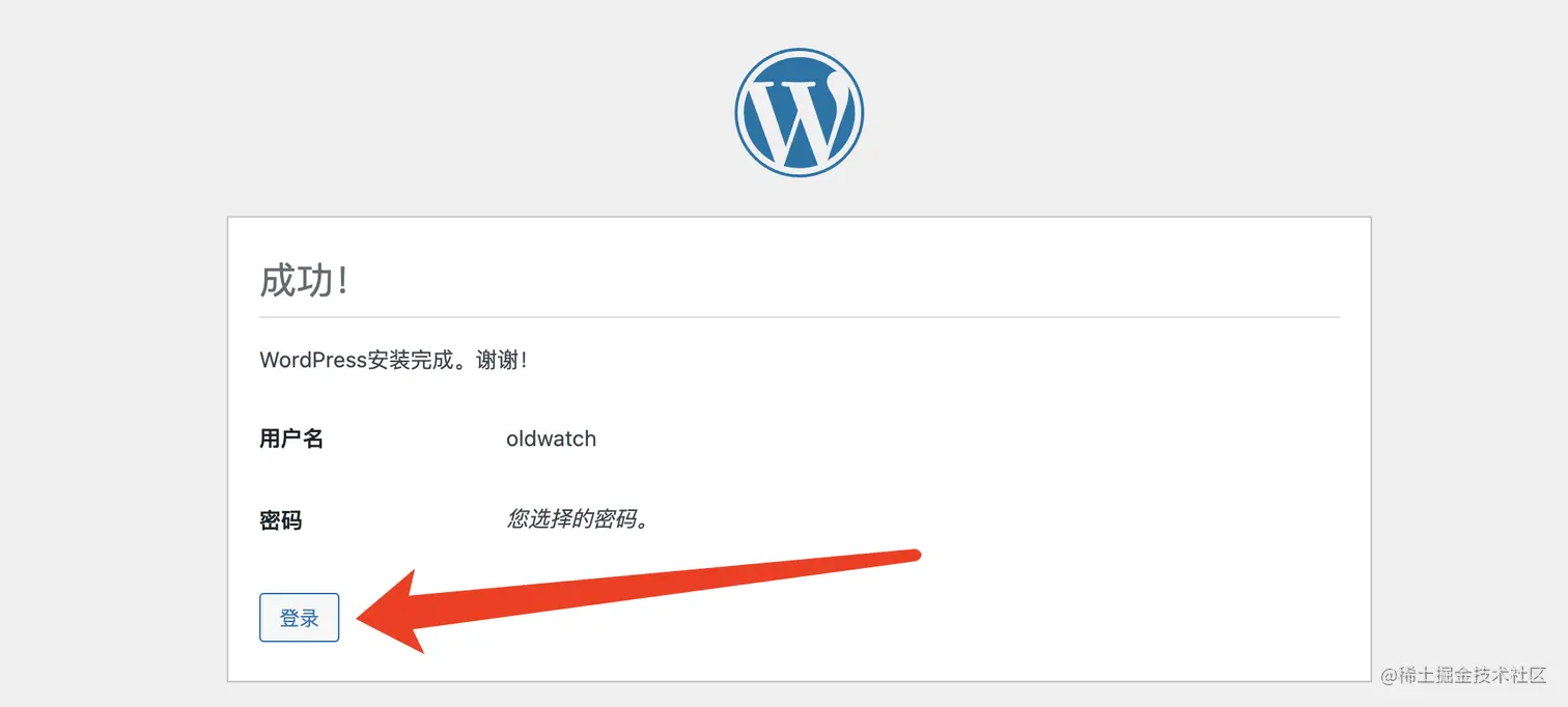 安装完成后,直接点击登录按钮,就会跳转到Wordpress后台登录页面。