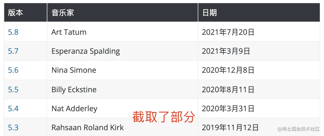 但之前也看了下WordPress官网,发现最新版本是5.8,另外5.6是近一年前的版本,当然安装最新的最nice,所以我选择直接从官网下载然后安装。(官网将作者们称为音乐家musician,对贡献者的这种称呼就很有意思很有爱了)