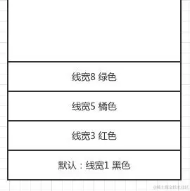 最终会执行为线宽8的绿色线段,原因就是线宽8的绿色线段会覆盖掉上面 线宽5的橘色 线段和 线宽3的红色 线段。如果使用栈来表示:
