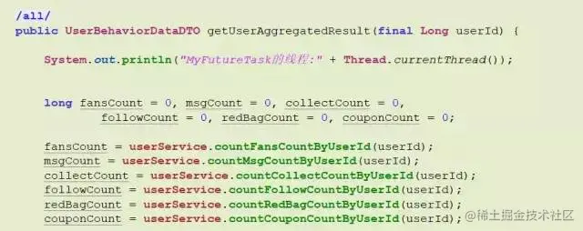 System.out.println("UserService获取FollowCount的线程 " + Thread.currentThread().getName());