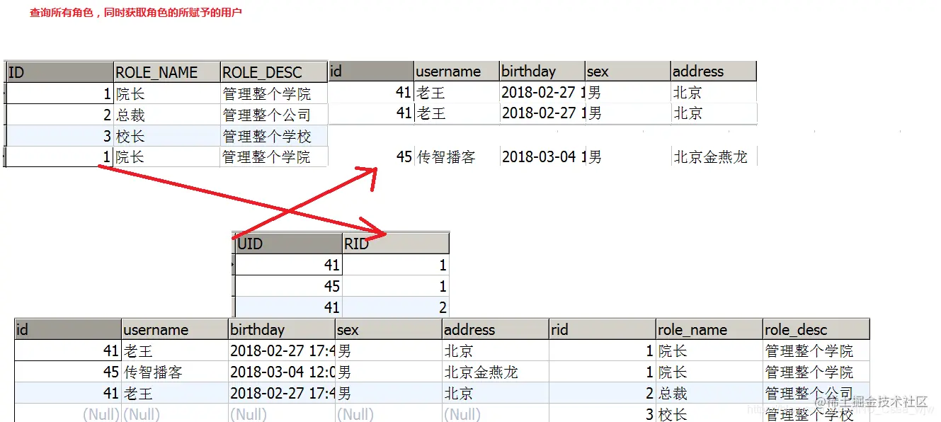 SELECT u.*,r.id AS rid,r.role_name,r.role_desc FROM USER u