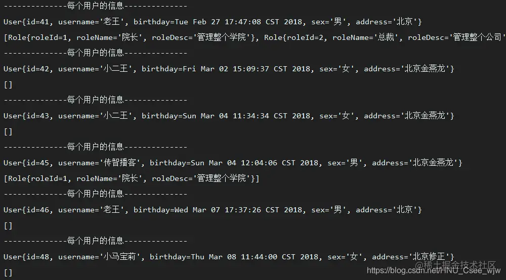 当我们查询用户时,可以同时得到用户所包含的角色信息