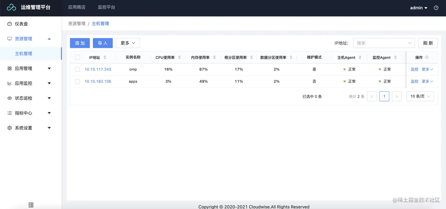 为了切实帮助运维人员解决以上运维痛点,云智慧以降低交付难度与提升产品的可维护性的设计初衷,打造了OMP(运维管理平台),该平台目前拥有主机纳管、应用管理、应用监控、状态巡检等核心特性。