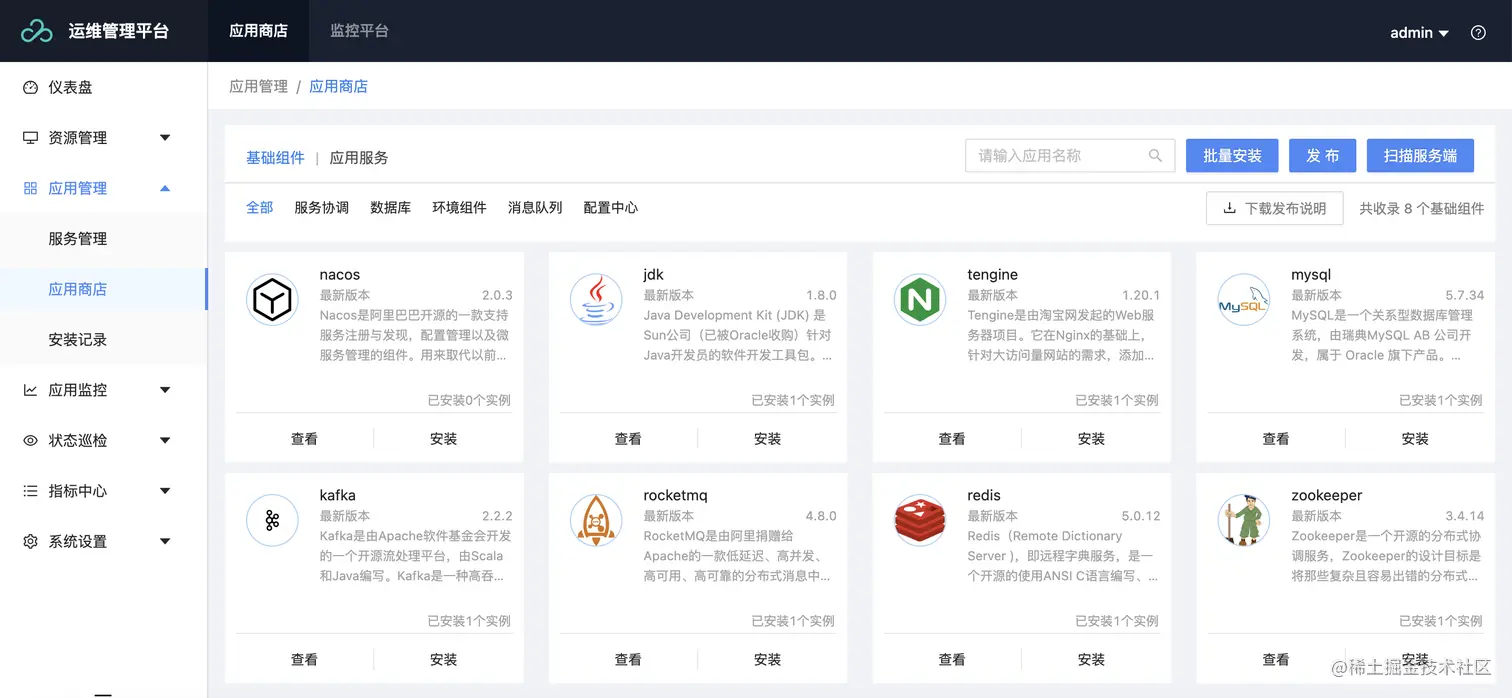 提供常用基础组件、应用服务及符合标准的自研产品,支持安装部署、变更发布、弹性扩缩容、在线配置优化等服务状态管理。