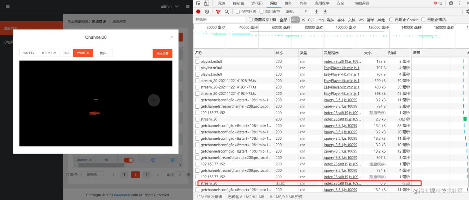 收到反馈我们非常的重视,第一时间着手测试,发现问题确实存在,在切换到WebRTC格式的视频流时加载时长需要大概八秒左右,这肯定是不合理的。播放过程中我们发现加载会挂起一段时间。