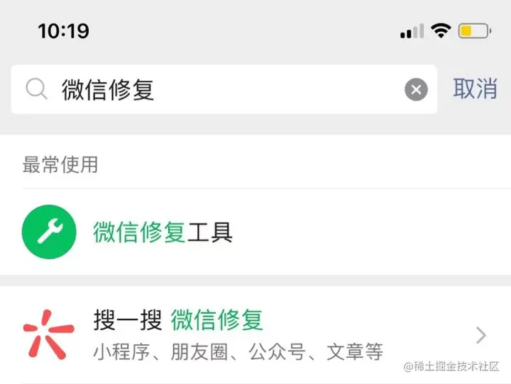 我们首先可以尝试用微信自带的修复工具恢复,操作方法:直接在搜索栏目搜索【微信修复工具】,然后点击进去按【故障修复】-【聊天记录】即可。